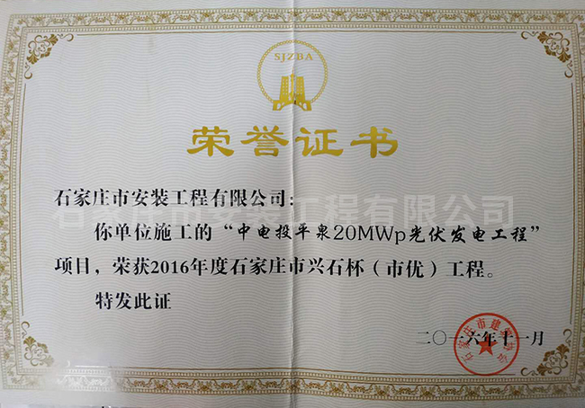 > 企業(yè)榮譽2016年度石家莊市興石杯(市優(yōu))工程